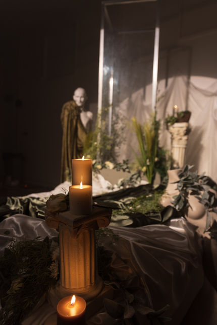 Painter's focus is only on his muse and my attempt with the set design is to draw focus on the two characters using the motif of rose creating a distinct path between the painter and the muse.